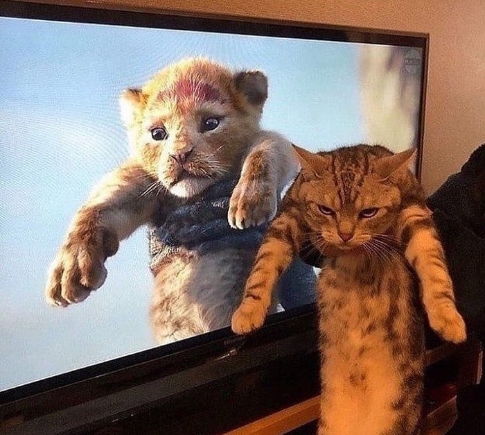 Amikor otthon megnéztem Az oroszlánkirály új változatát, a macskámmal én is eljátszottam a nyitójelenetet. Mint később kiderült, a nyitott ablakoknak köszönhetően ezt a szomszédaim is látták.