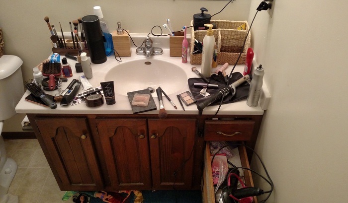 (2) A feleségem ma reggel ilyen állapotban hagyta itt a fürdőszobát.