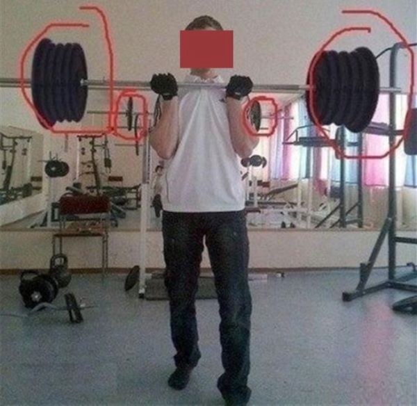 (8) A tükörben mintha egy kicsit kevesebb súly látszana a rúdon. Egyébként meg ki az, aki farmernadrágban szokott edzeni?