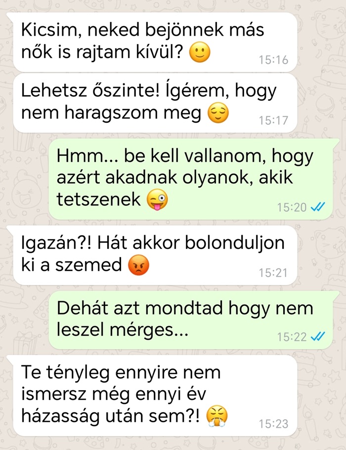Legalábbis mi még ilyen házastársakkal nem találkoztunk a való életben. Az sem jó, ha túl komolyan veszik egymást és magukat, sőt, feszültségoldás szempontjából inkább pont az lehet a kulcs, ha humorral tudnak állni saját magukhoz és a párjukhoz is.