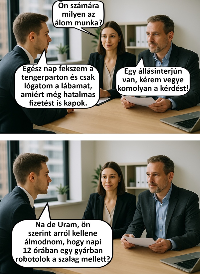 2. Egy állásinterjún ez a párbeszéd zajlott le köztem és a felvételiztetők között, aminek az lett a vége, hogy megkaptam az állást.