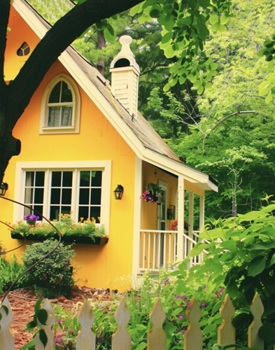 Egy órával később megérkeztem. A ház gyönyörű volt – sárga falakkal, fehér spalettákkal és egy körbefutó verandával. A kert egy mesebeli otthont idézett.