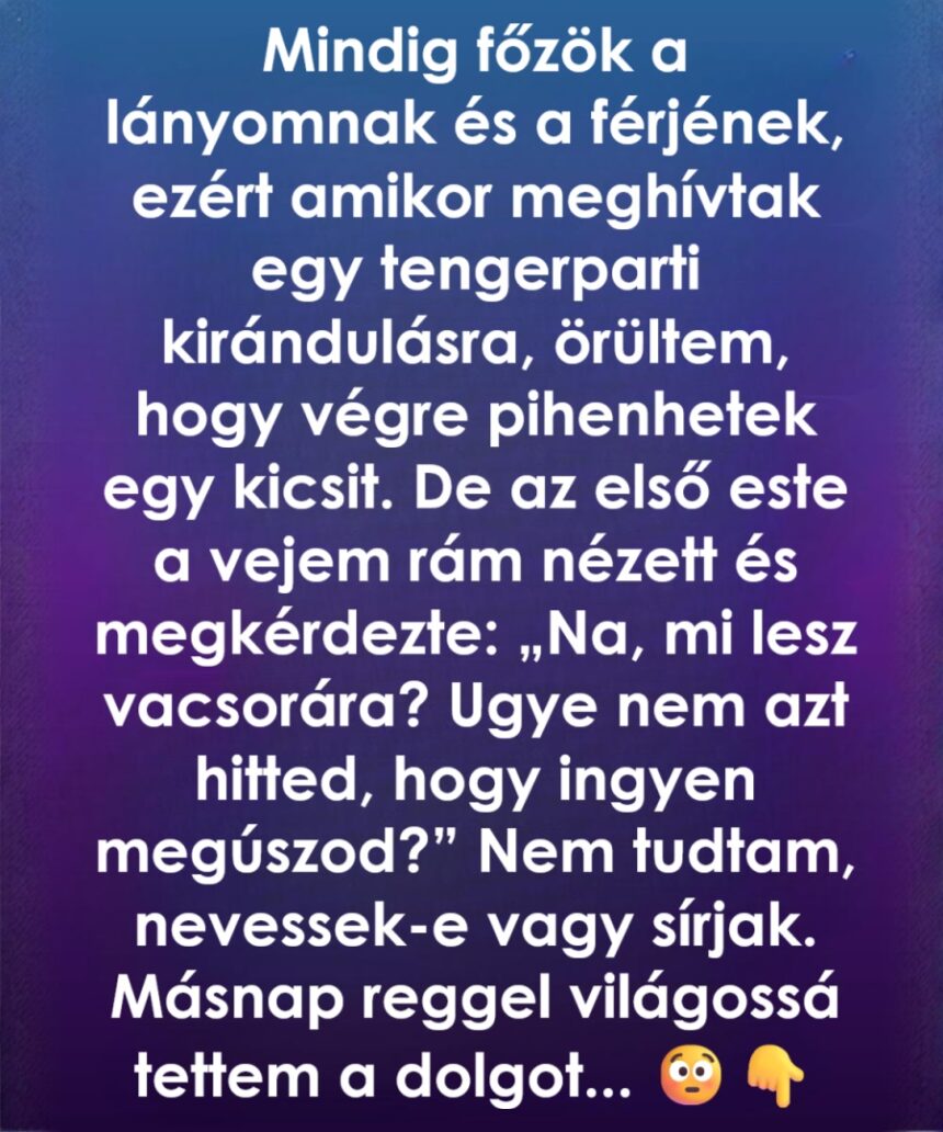 Amikor a lányom és a férje meghívtak a családi tengerparti nyaralásra, majd kiugrott a szívem az örömtől. Ritkán kérnek ilyesmire, és bevallom, jól esett az érzés, hogy számítanak rám. Vasárnaponként mindig náluk voltam: főztem tartalmas leveseket, rakott ételeket, és persze a lányom kedvenc citromtortáját. Soha nem kértem érte semmit. A gondoskodás volt a nyelvem.