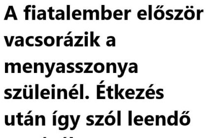 A fiatalember először vacsorázik a menyasszonya szüleinél. Étkezés után így szól leendő…