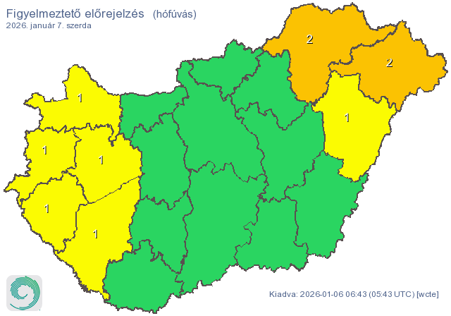 Éjfélig az ország délkeleti kétharmadán további 5–15 centiméter hó gyűlhet össze. A helyzetet súlyosbítja, hogy a hőmérséklet tartósan fagypont alatt marad, így a hó nem olvad el, hanem az utakra fagyhat, komoly balesetveszélyt okozva.