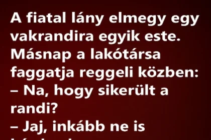 A fiatal lány elmegy egy vakrandira egyik este. Másnap a lakótársa faggatja…