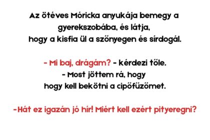 Vicc: Az ötéves Móricka ül a szőnyegen és sírdogál