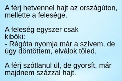 A férj hetvennel hajt az országúton,mellette a felesége. A feleség egyszer csak…