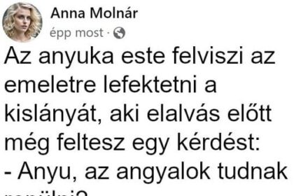 Az anyuka este felviszi az emeletre lefektetni a kislányát, aki elalvás előtt…