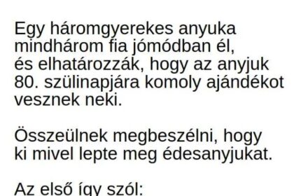 VICC: Egy háromgyerekes anyuka három fia elhatározza, hogy az anyjuk 80. szülinapjára komoly ajándékot vesznek neki.