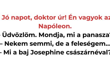 – Jó napot, doktor úr! Én vagyok az, Napóleon.– Üdvözlöm. Mondja, mi…
