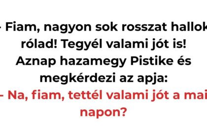 - Fiam, nagyon sok rosszat hallok rólad! Tegyél valami jót is!Aznap hazamegy…