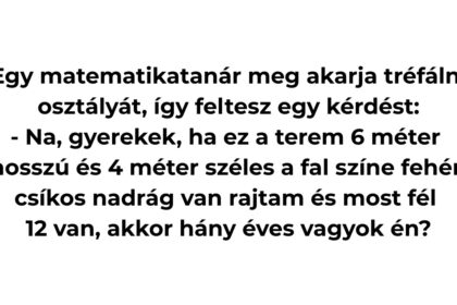 Egy matematikatanár meg akarja tréfálni osztályát, így feltesz egy kérdést: - Na,…