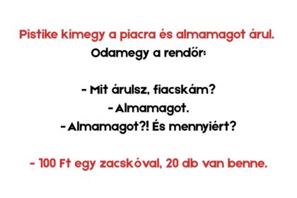Pistike kimegy a piacra és almamagot árul. Odamegy a rendőr: - Mit…