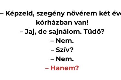 – Képzeld, szegény nővérem két éve kórházban van!– Jaj, de sajnálom. Tüdő?…