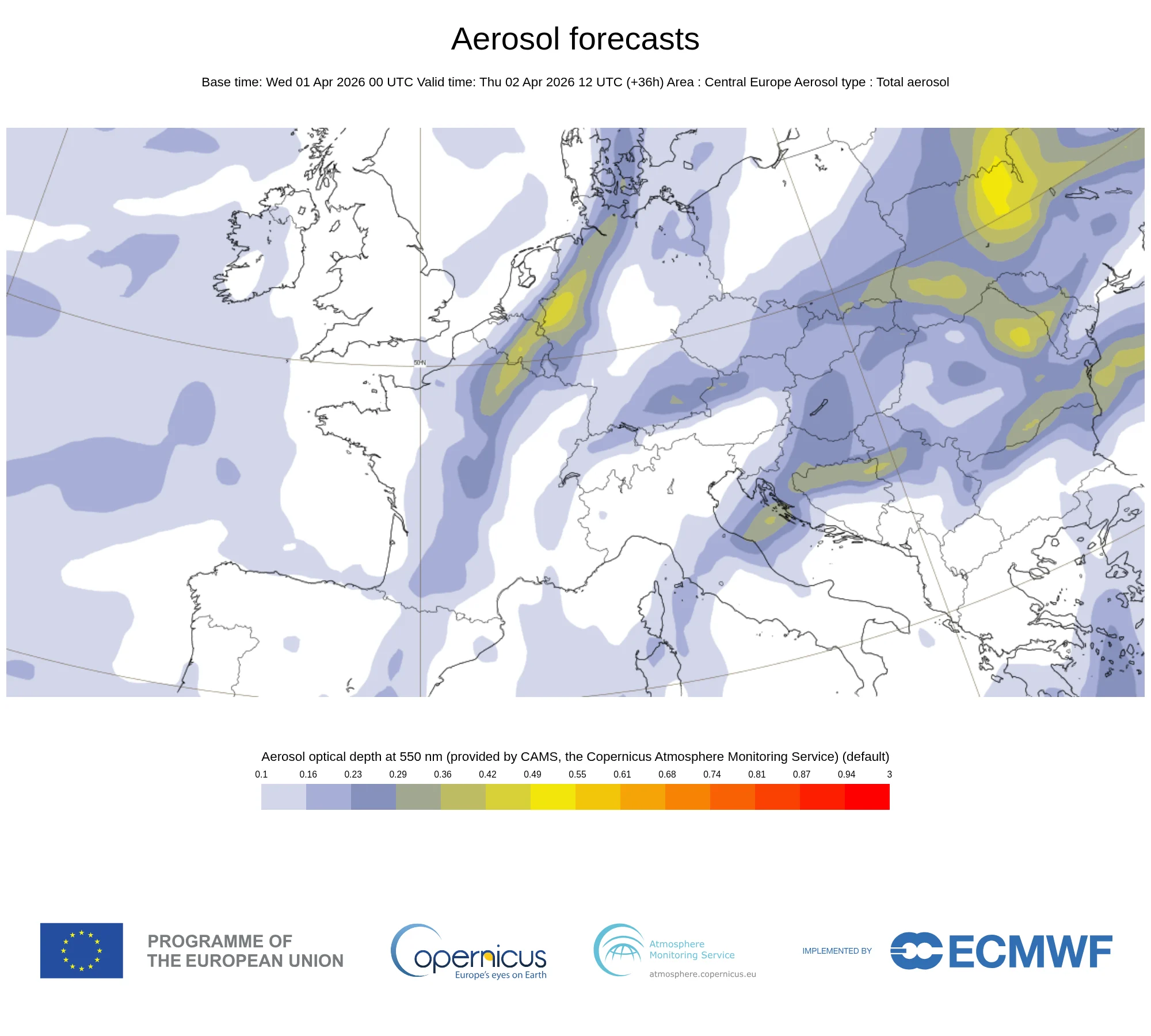 A folyamatot a Copernicus Atmosphere Monitoring Service (CAMS) modellezései is alátámasztják. Ezek az előrejelzések az úgynevezett aeroszol optikai vastagság, vagyis az AOD alapján mutatják meg, mennyi lebegő részecske található a légkörben.