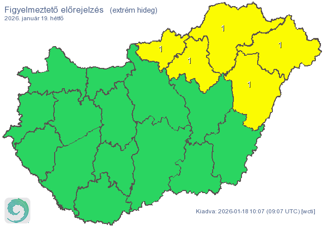 Az ország északkeleti harmadában az előttünk álló éjszakákon –15 fok körüli vagy annál is alacsonyabb minimumok várhatók, így a tartós fagy tovább terheli a szervezetet, az autókat és a közműveket is.