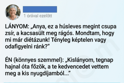 A lányom a vasárnapi asztalnál közölte, hogy „ehetetlen” a főztöm, és inkább étterembe mentek volna – a férjem ekkor felállt, fogta a lányunk tányérját, és olyat tett, amitől megfagyott a levegő