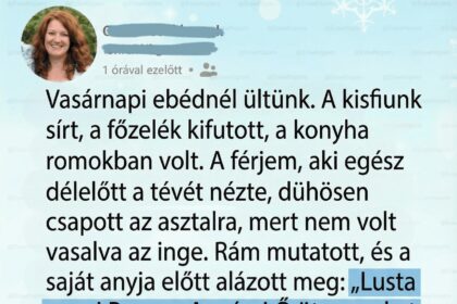 A férjem a vasárnapi húsleves felett üvöltött velem: „Bezzeg Anyám öt gyerek mellett is ragyogó rendet tartott, te meg egyel sem bírsz!” – ekkor az anyósom csendben letette a kanalat