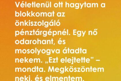 Az önkiszolgáló kasszánál végeztem, és siettem kifelé. Nem vettem észre, hogy a…