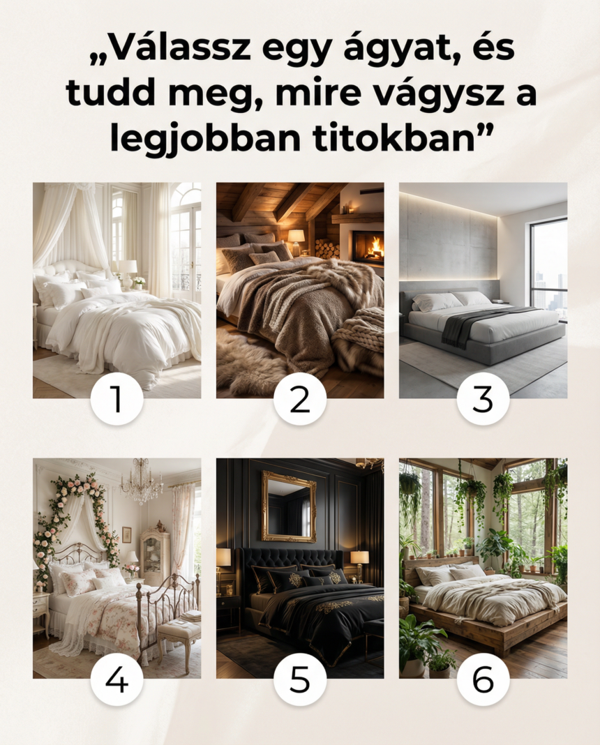 Megdöbbentően sokat elárulhat rólad egyetlen választás: még az is, hogy melyik ágy tetszik meg első pillantásra. Egy játékos személyiségteszt most azt ígéri, hogy a kedvenc fekhelyed alapján közelebb kerülhetsz ahhoz, milyen titkos vágyak lapulnak benned valójában.