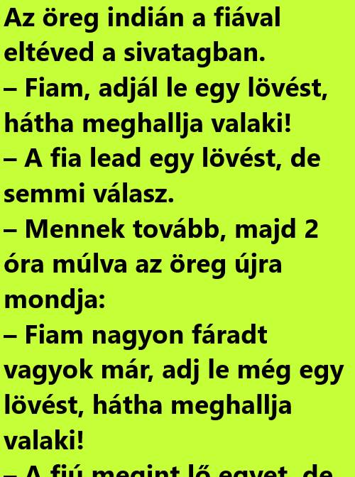 – Fiam nagyon fáradt vagyok már, adj le még egy lövést, hátha meghallja valaki!