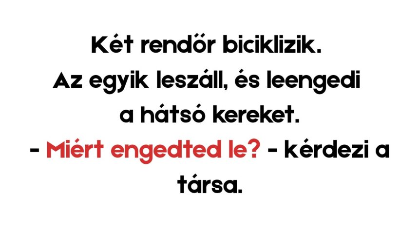 Két rendőr biciklizik. Az egyik leszáll, és leengedi a hátsó kereket.