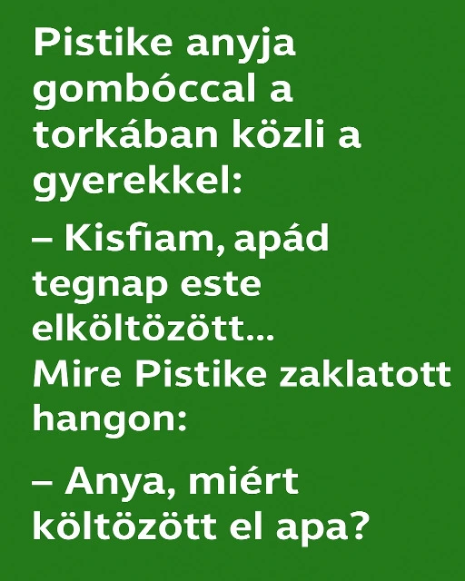 Pistike anyja gombóccal a torkában közli a gyerekkel: